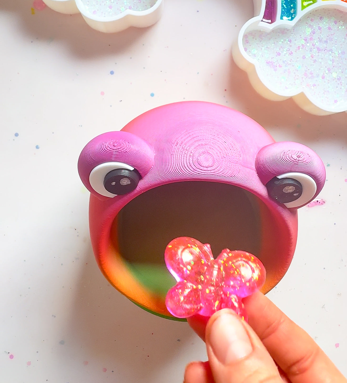 Comes with an optional set of sparkly resin bugs ready for play.