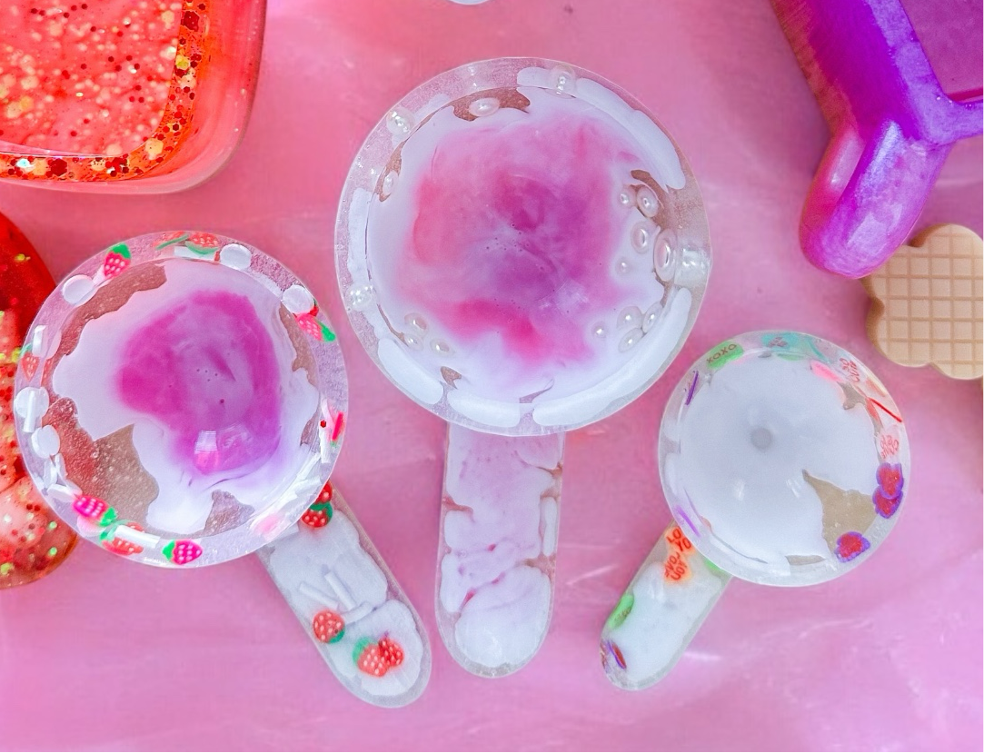 Beautiful scoop set for messy play and more, set of 3 spoons in three sizes.