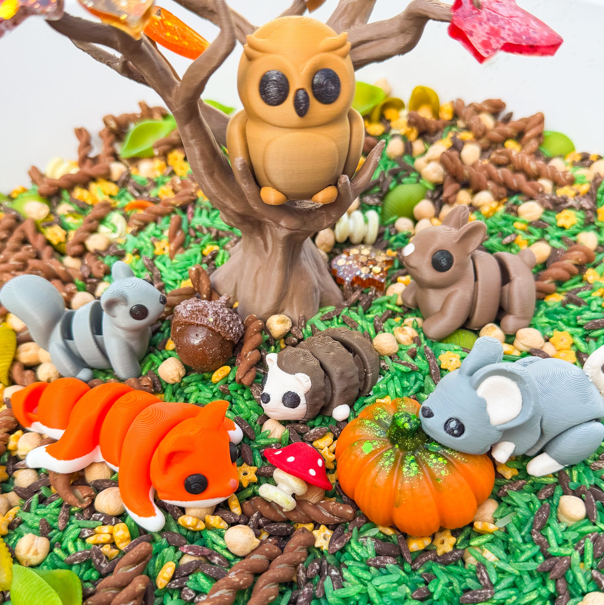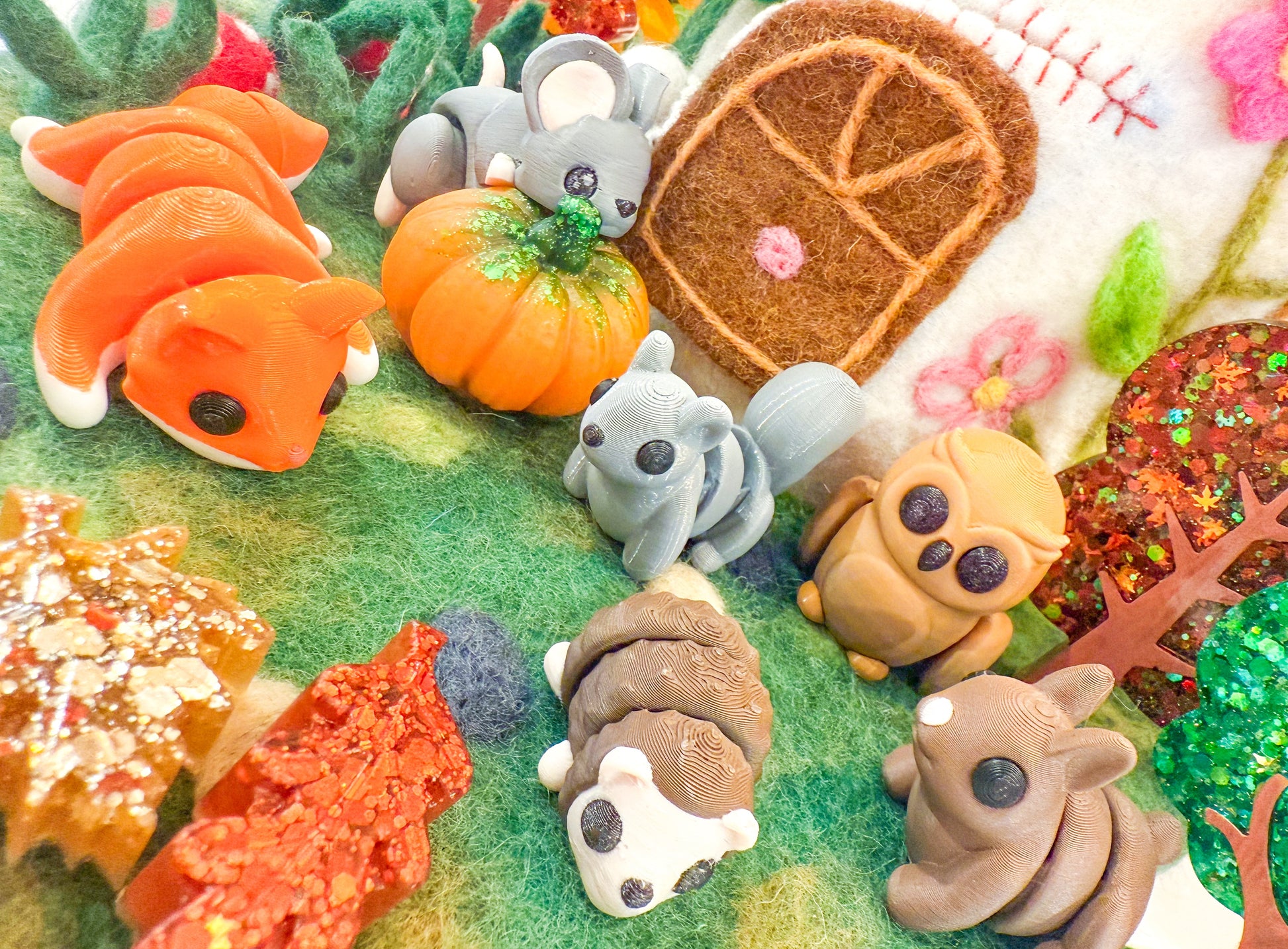 Fox, hedgehog, owl, squirrel, mouse and bunny, all the autumnal feels with these forest animals. They’re wriggly and bendy for little hands. They can also scuttle through a small world scene, act out stories, be stacked and balanced in funny ways, or simply used as a sensory toy.