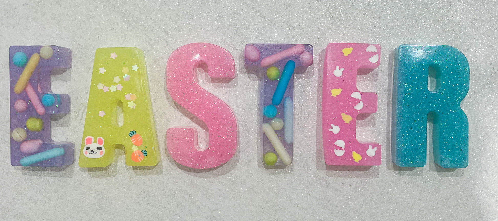 Style as photos. Chunky capital letters perfect for topic words and titles. Write in the custom box which design you’d like and the word you want. Choose how many letters you need on the quantity box. Price £2 per letter.