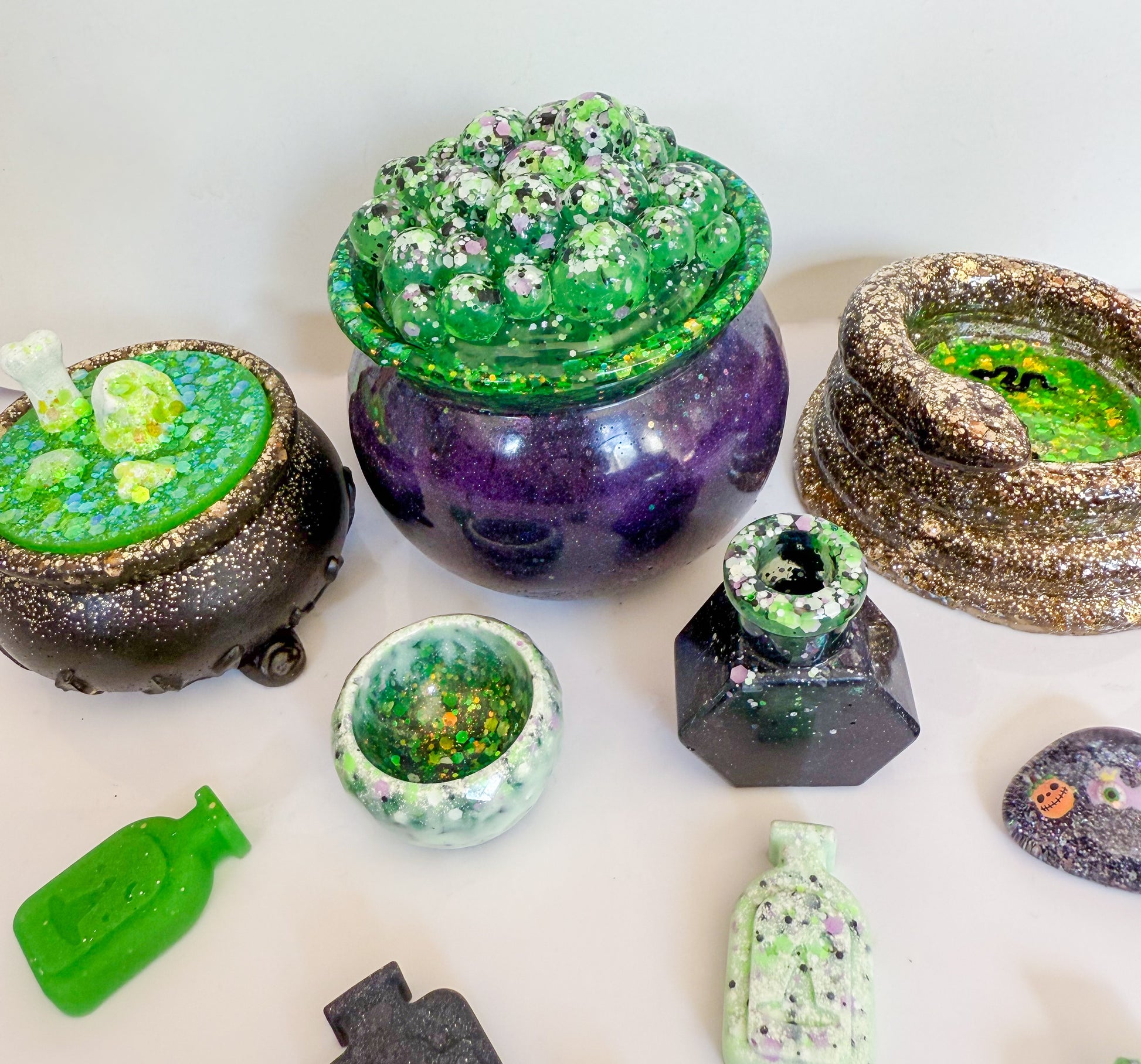 A spooky selection of trinkets to mix and match. Choose from the small skeleton cauldron, the larger bubbling cauldron, the slithering serpent rimmed pot or the minis- each sold individually so you can build your own collection.