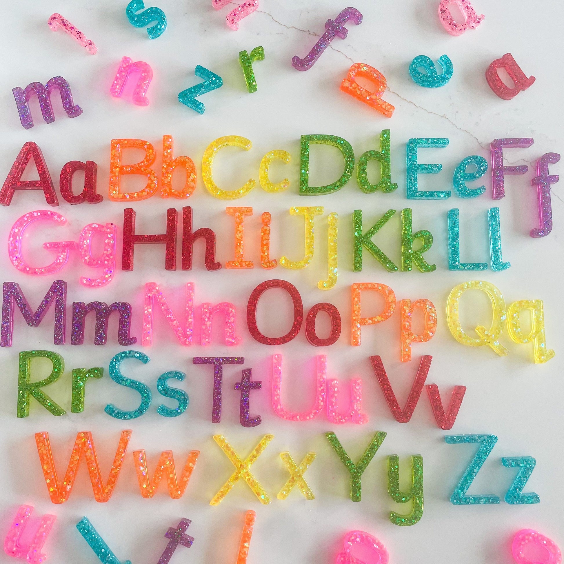Resin alphabet in handwriting font suitable for children learning to read and write using the correct letter formation.