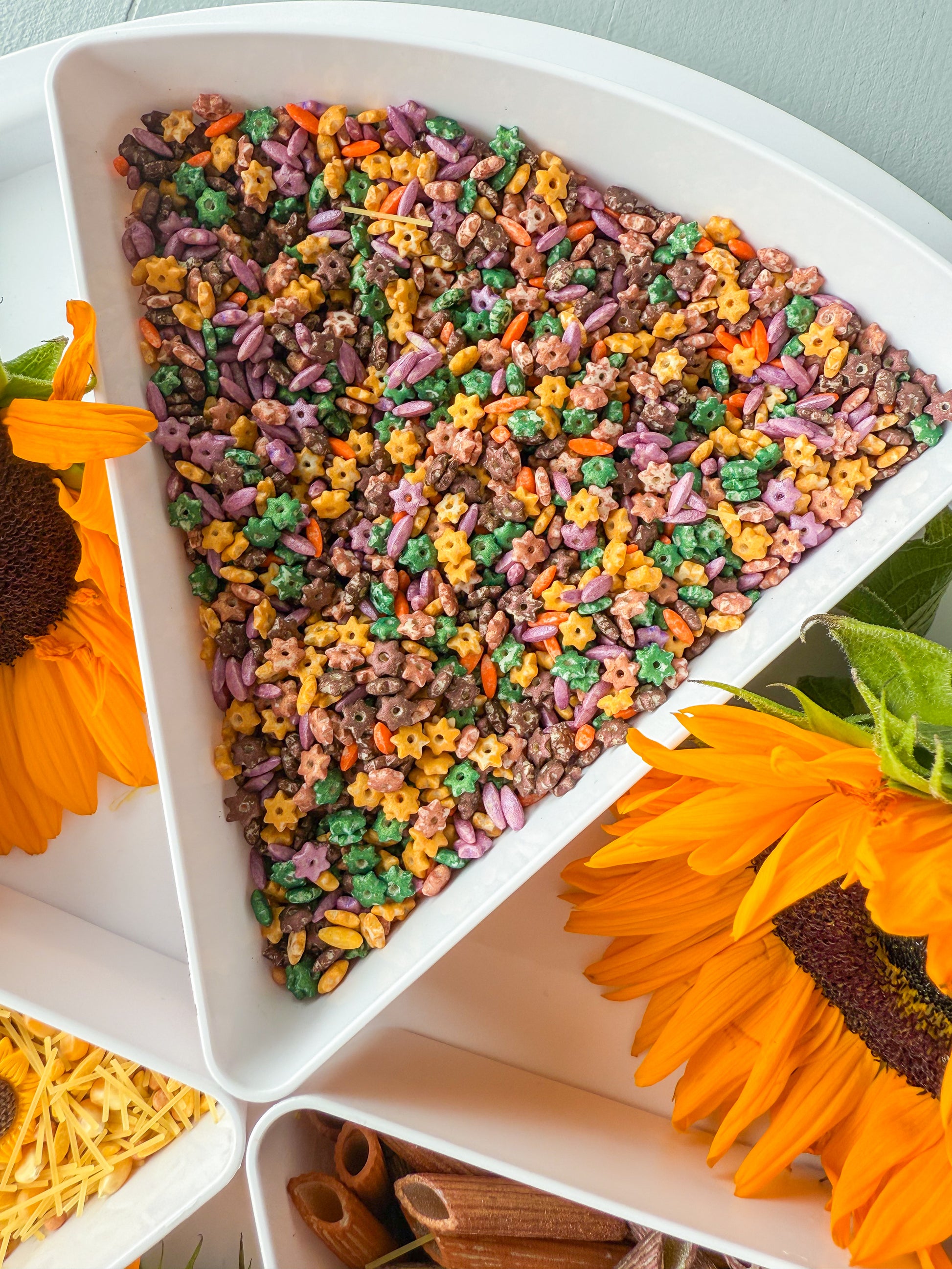 A colourful mix of rice and sprinkles in warm autumn shades, just like a crunchy leaf fall.