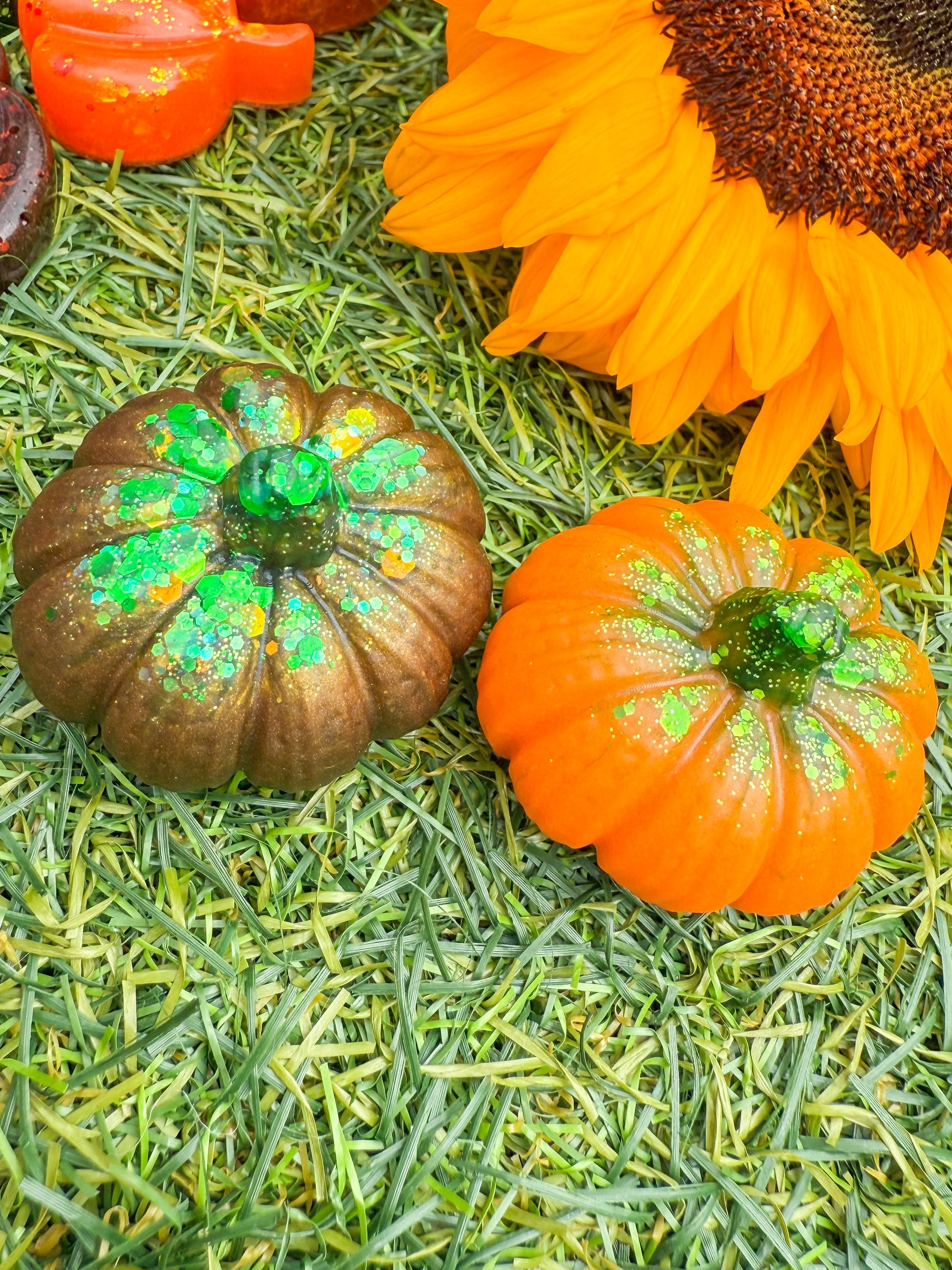 Individual resin pumpkins with a glittery finish. Lovely as loose parts, counters or an autumn play accessory.