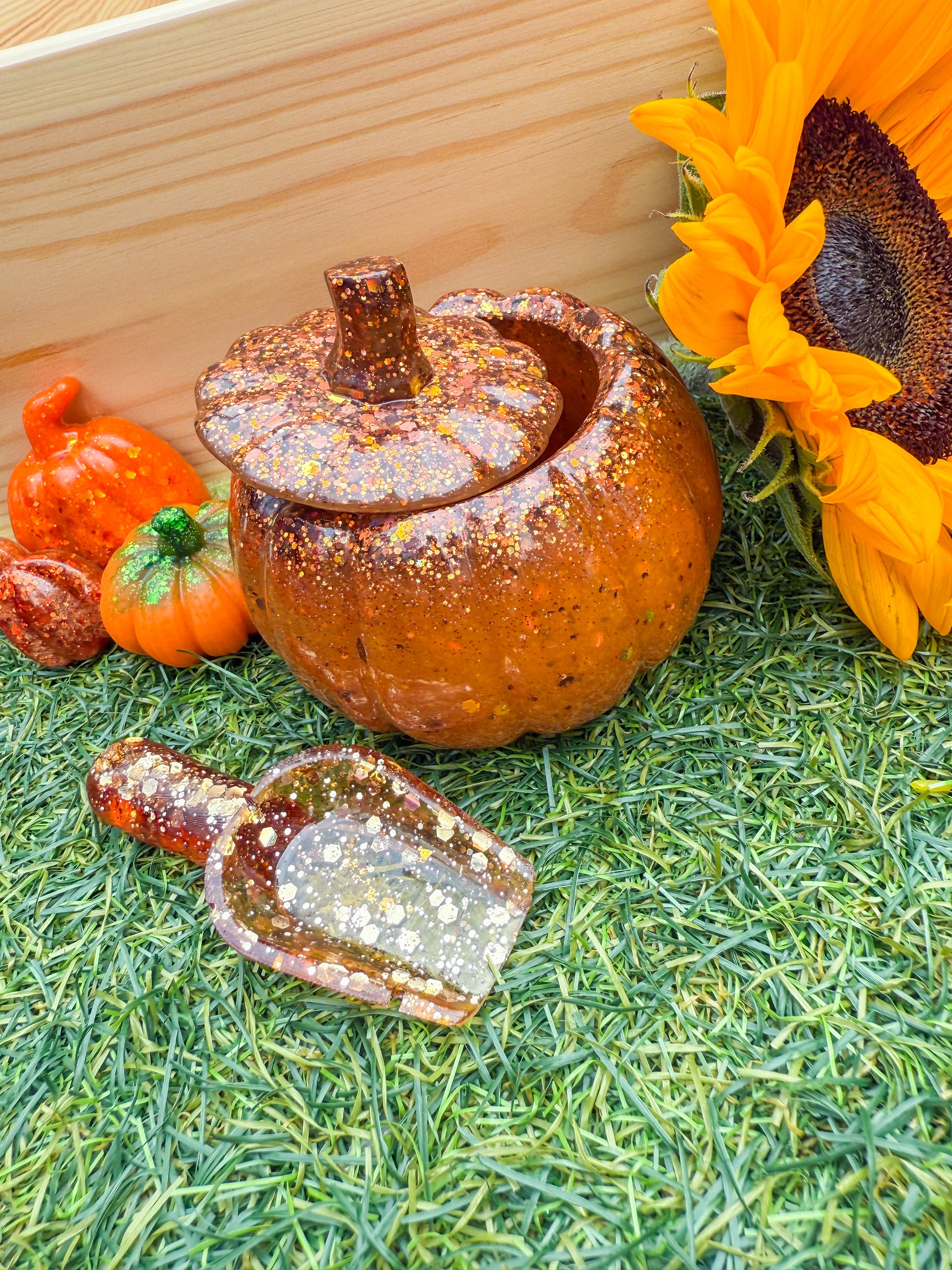 ย This glittering pumpkin pot comes with a matching resin scoop โ ideal for sensory fillers, treasures, or loose parts play. A fun, autumnal addition to any setup.