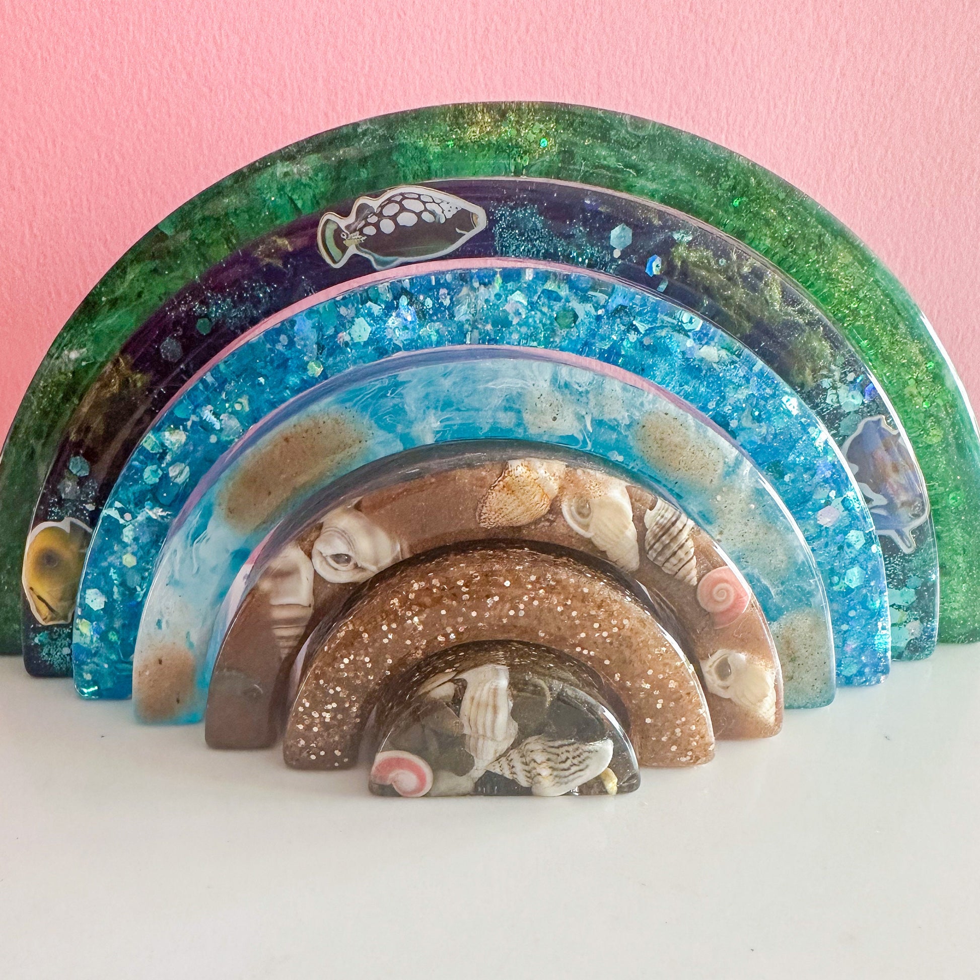 Rainbow stacking toy with a seaside theme. perfect for playing alone or adding to a small world set up and more!