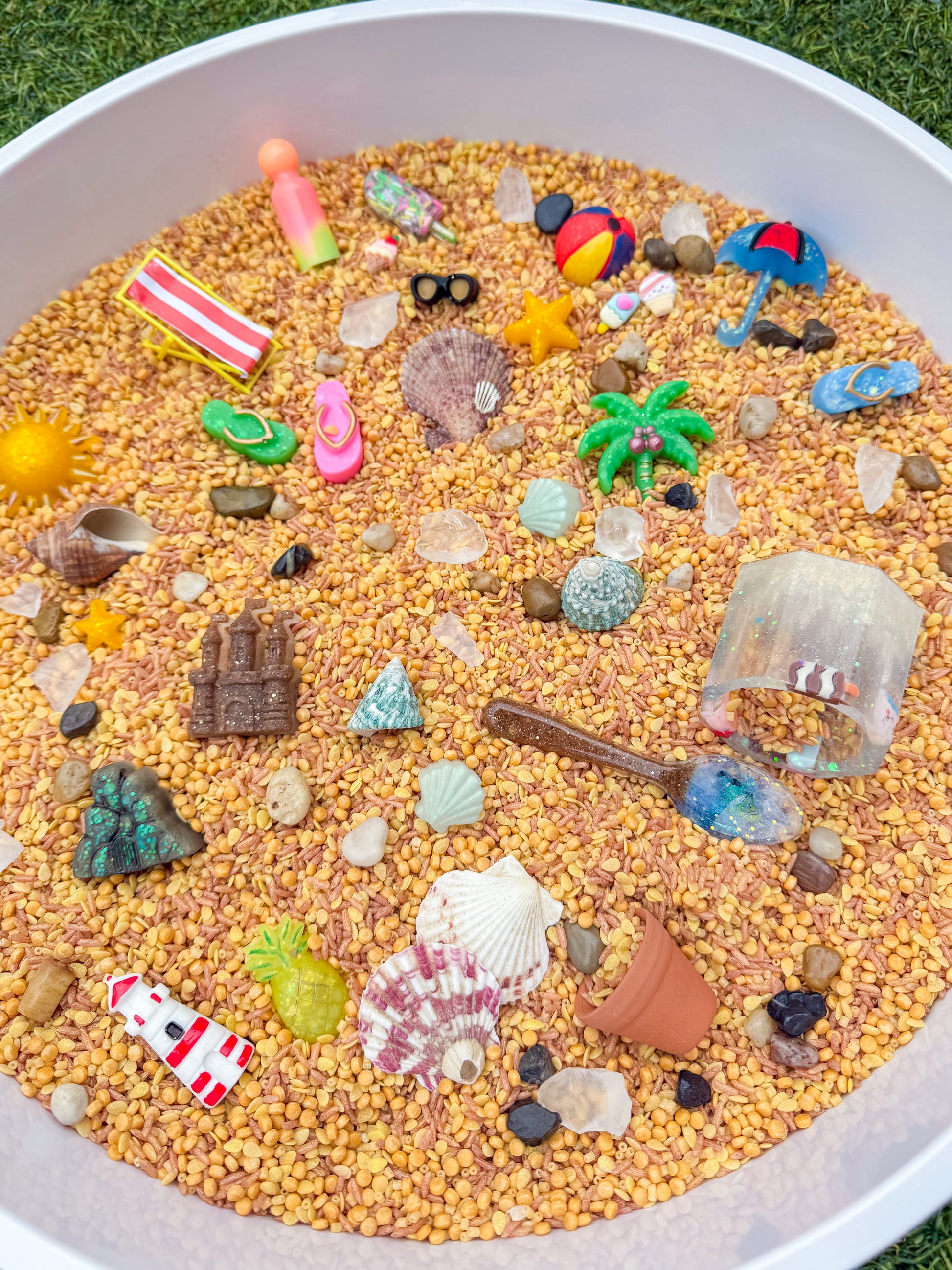 Our Sunshine and Sandals Pour & Explore kit brings fun in the sun right onto your play tray. Choose from two sizes to suit your family: